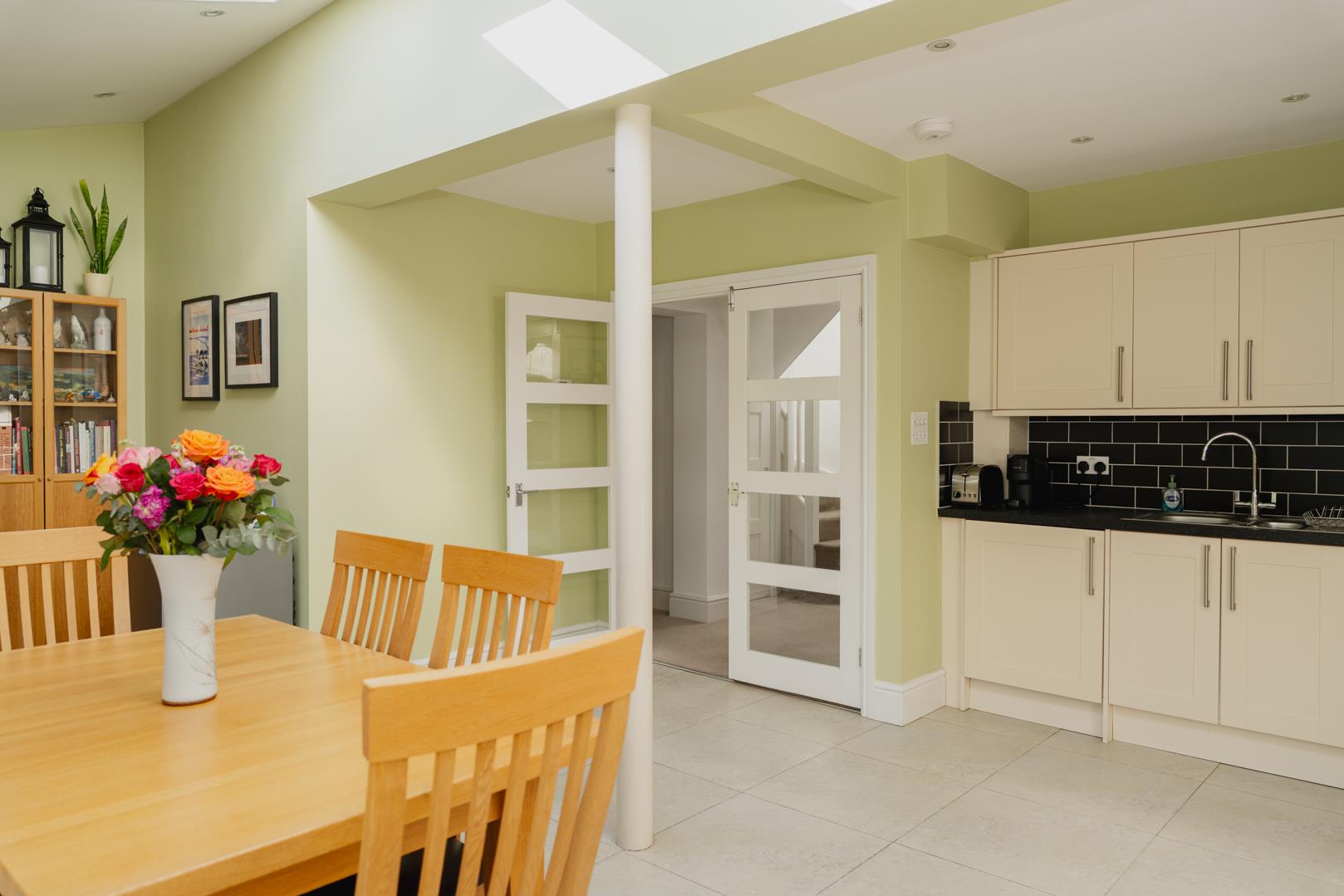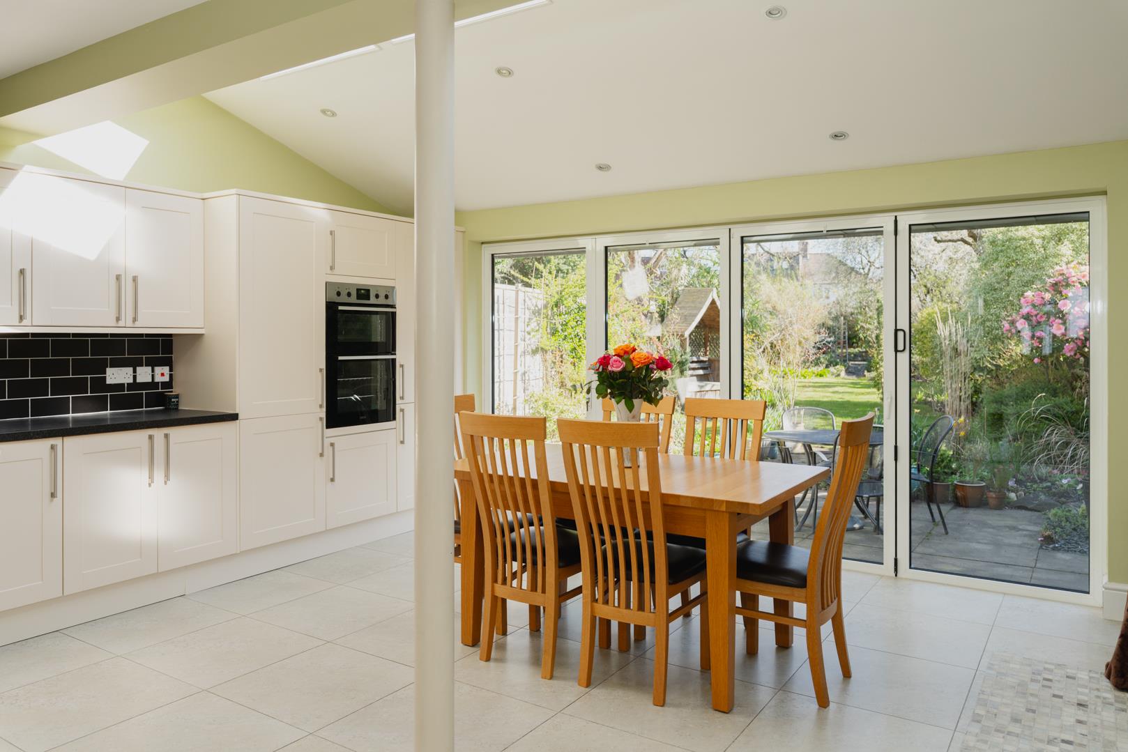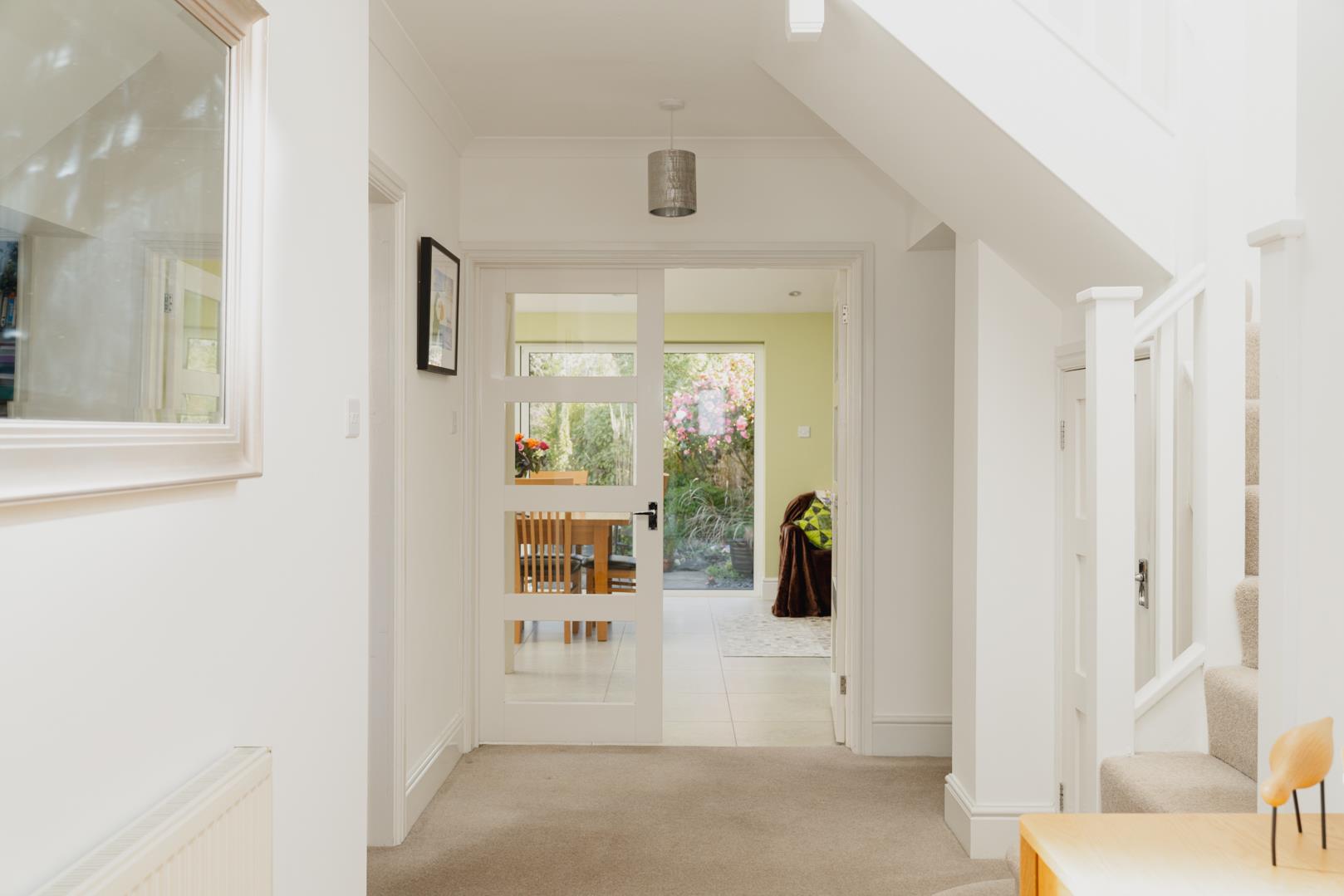 Due to the space added by the current owners, you are welcomed into the property by a fantastic, light-filled hallway with ample storage. This leads to the essential downstairs cloakroom, a practical home office, and a well-proportioned living room. The ground floor is completed by a stunning open-plan kitchen, dining, and family room, featuring a pitched ceiling and fabulous bi-fold doors that open onto the rear garden.