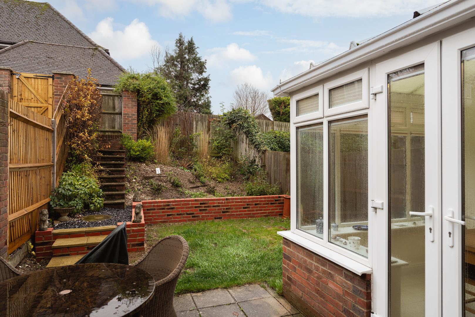 The manageable landscaped south facing rear garden includes a lawn section, paved patio, raised planted boarder with brick wall surround and handy secure gated rear access.