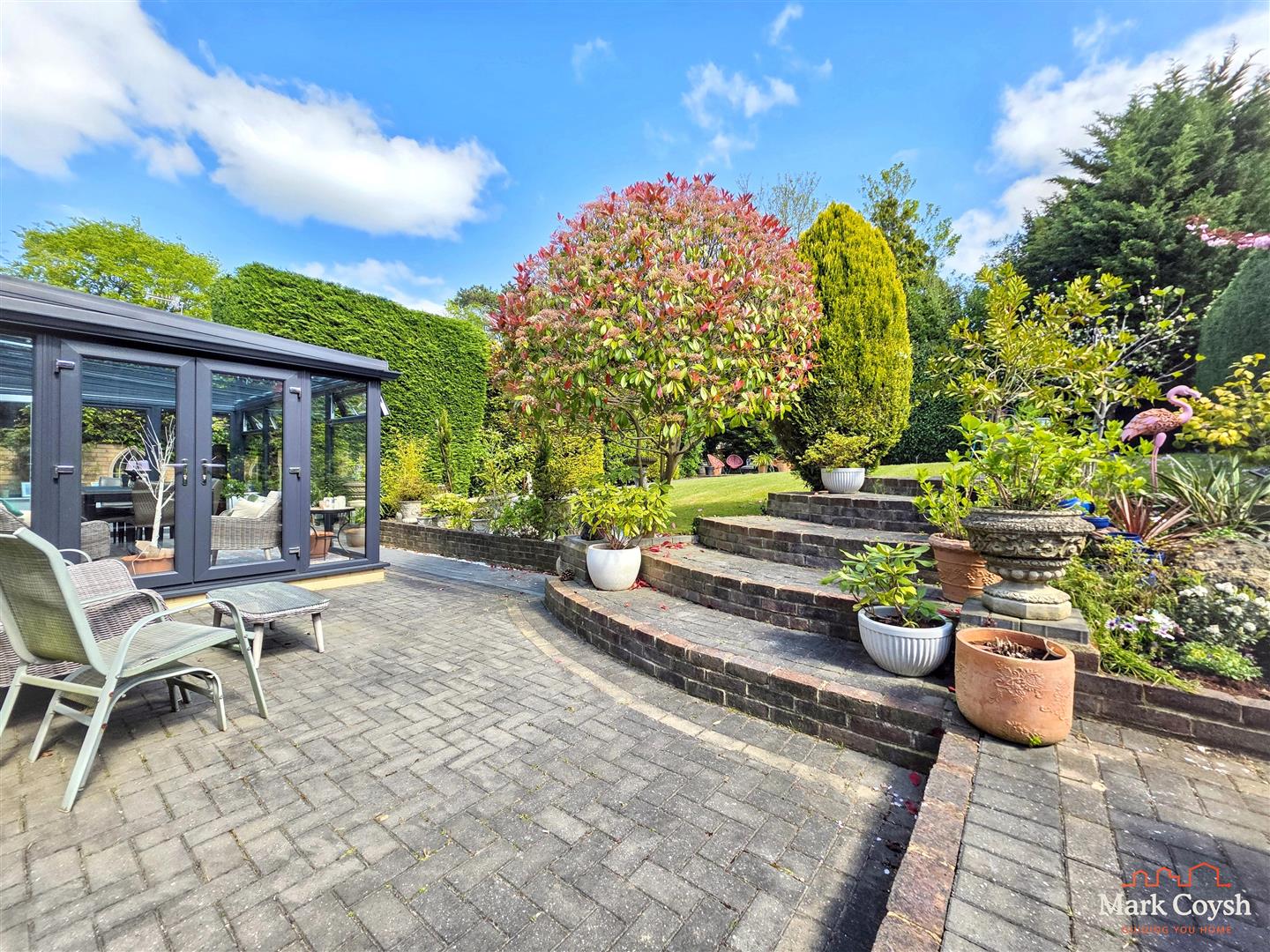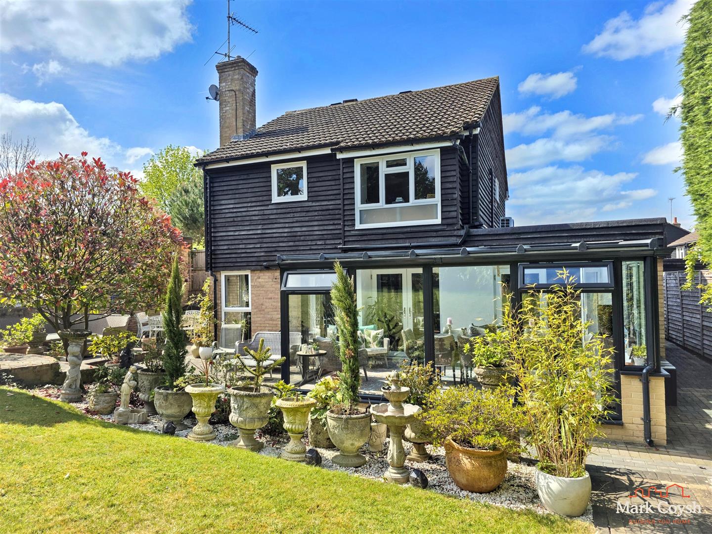 The landscaped rear garden is a particular feature, offering a large degree of seclusion and privacy, plenty of established plants and shrubs and a number of terraces for entertaining and enjoying the sun.