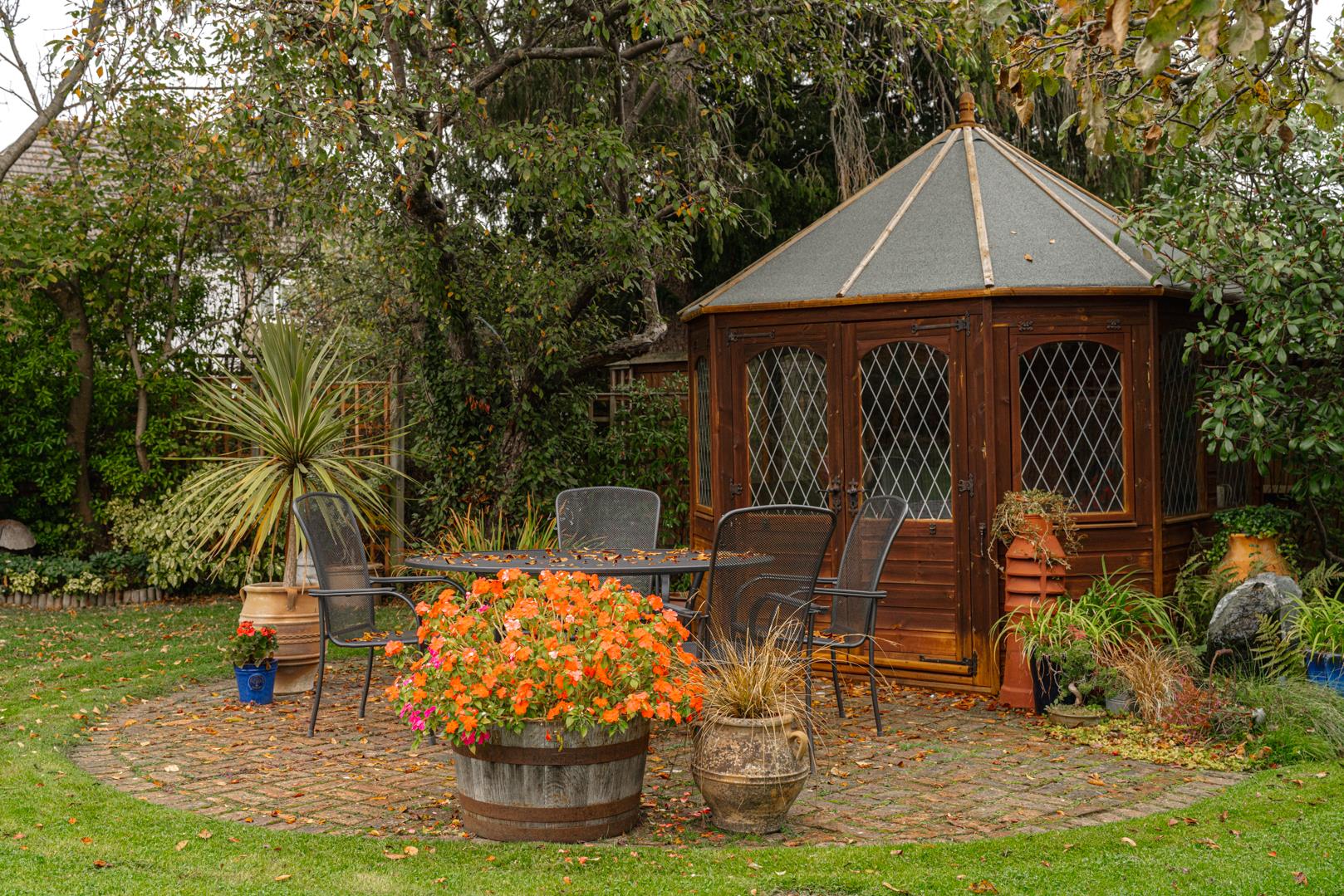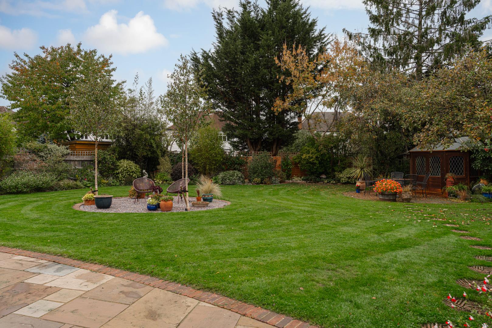 The rear garden is a true joy and reflects the decades of time and money spent by the current owners. Highlights include a well maintained lawn with a central feature seating area, an Indian Sandstone patio and well established borders with a wide variety of planting, including some beautiful trees. The garden is completed with a charming summer house, storage sheds and handy side access to the front of the residence. There you will find a driveway with ample off street parking.