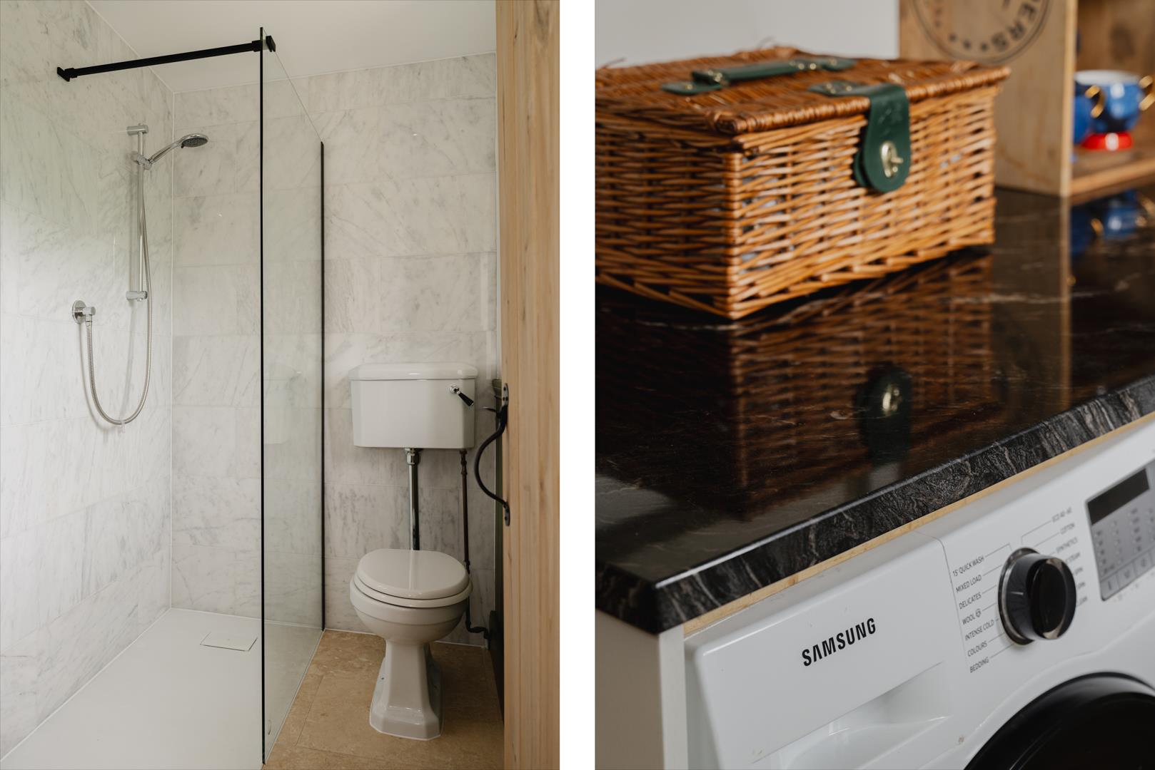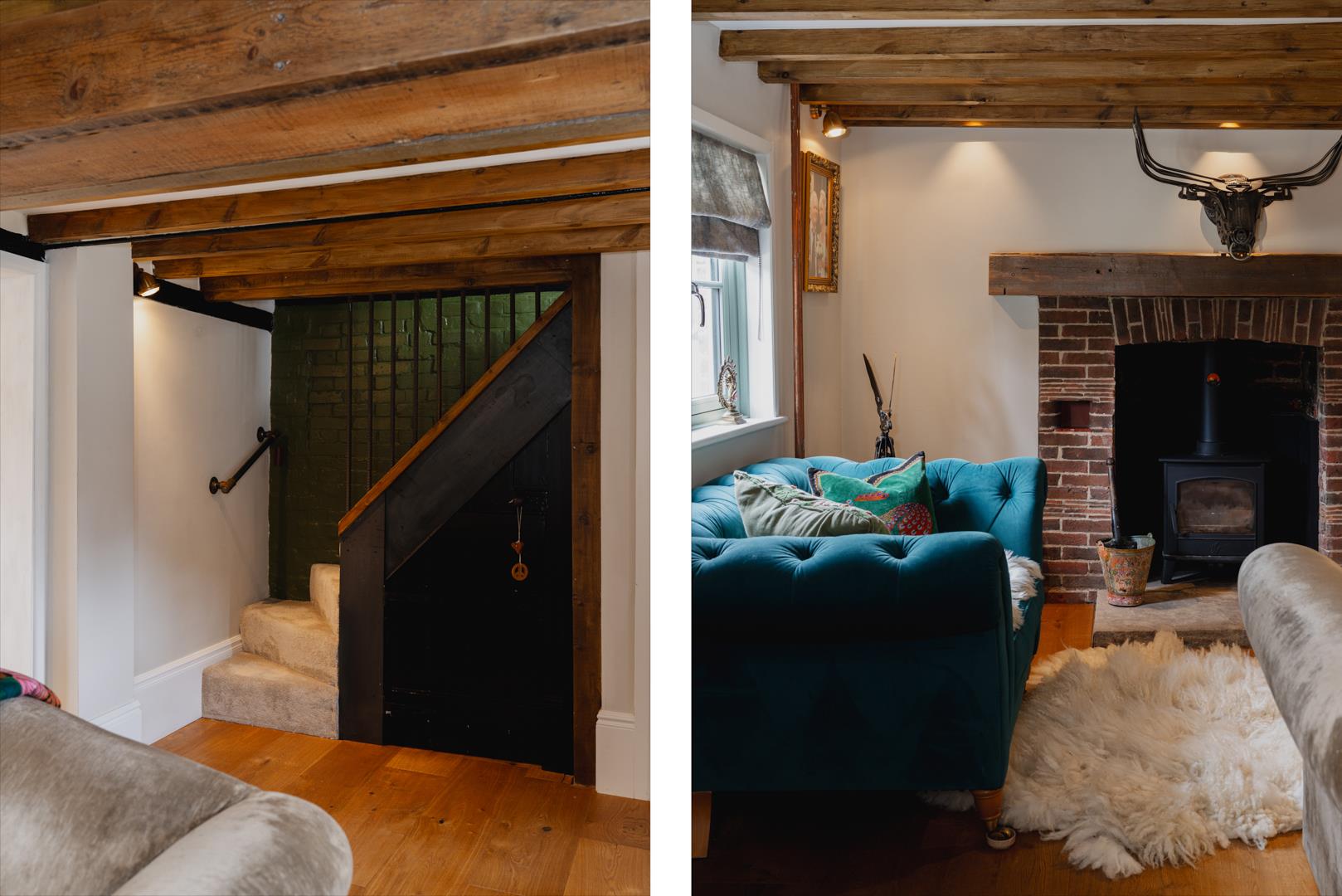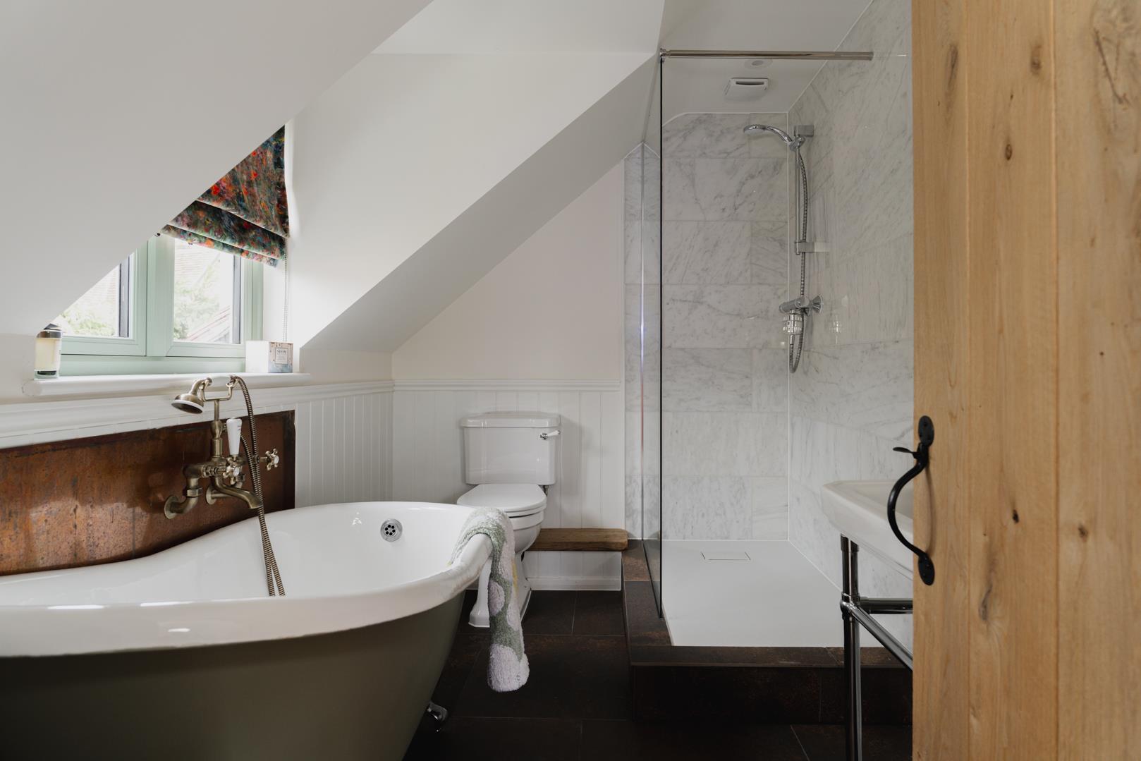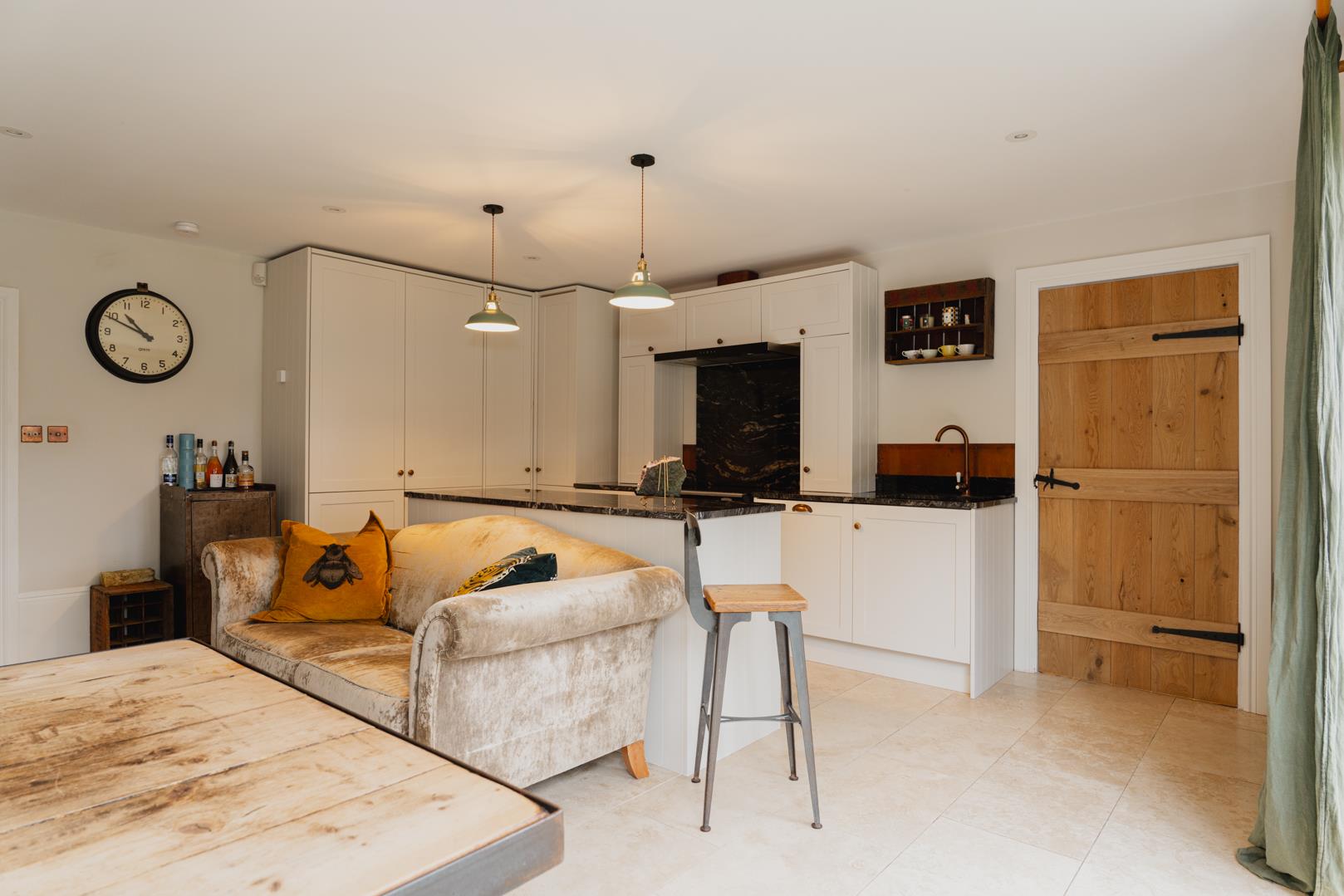 Boasting a stunning and bespoke finish throughout, the flexible ground floor layout comprises a cosy sitting room with a wood-burning stove and beamed ceiling; a downstairs bedroom which could also function as a home office or snug; and a breathtaking open-plan kitchen/dining/living room with a natural stone finish and Crittall-style doors to the garden. Completing the ground floor is a separate utility room with side access and a luxury shower room.