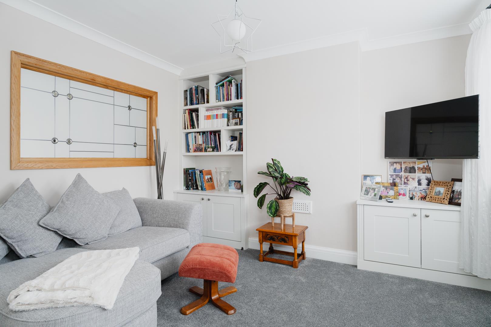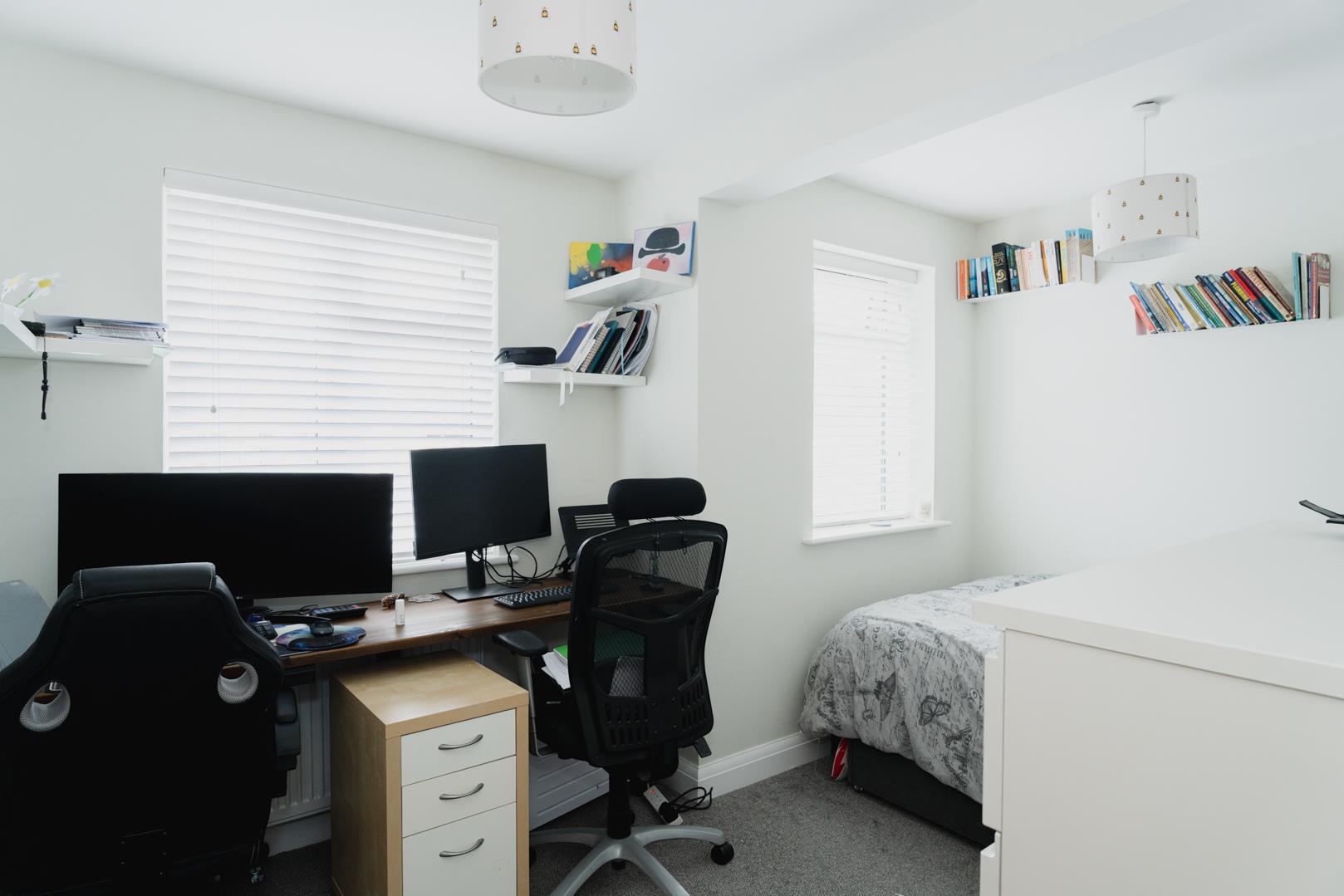 To the front there is a driveway with off street parking, which can comfortably fit three average sized cars.