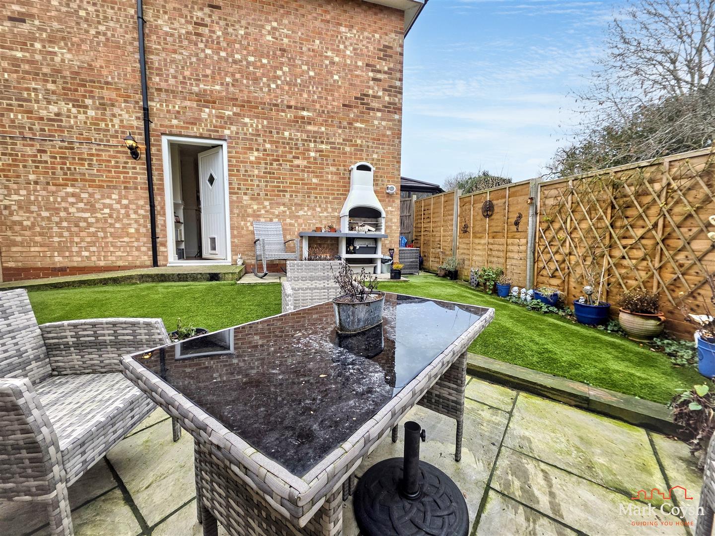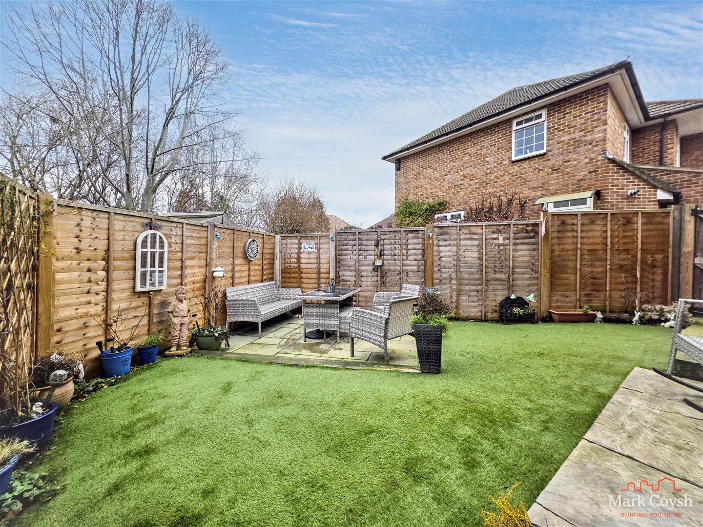 Outside there is a low maintenance enclosed garden, with an all weather lawn, a paved seating area and gated access to the front of the home where there is off street parking.